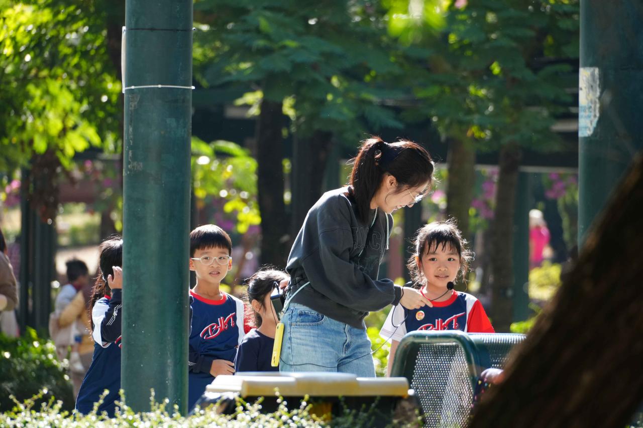 二年級同學前往佔地7.5公頃的元朗公園,並在山崗上的百鳥塔探索。這座紅色的七層觀景塔仿照傳統中國建築,內有30多種雀鳥,包括特別的橙腹葉鵯。學生們在觀鳥塔上觀察並學習鳥類的習性,積極提問,展現濃厚的學習興趣。此外,藍白色的樓梯成為了拍照的熱點,大家在這裡拍攝出美麗的構圖,享受大自然的美景。此次活動不僅增加了同學對自然界的認識,也培養了觀察力和思考能力。