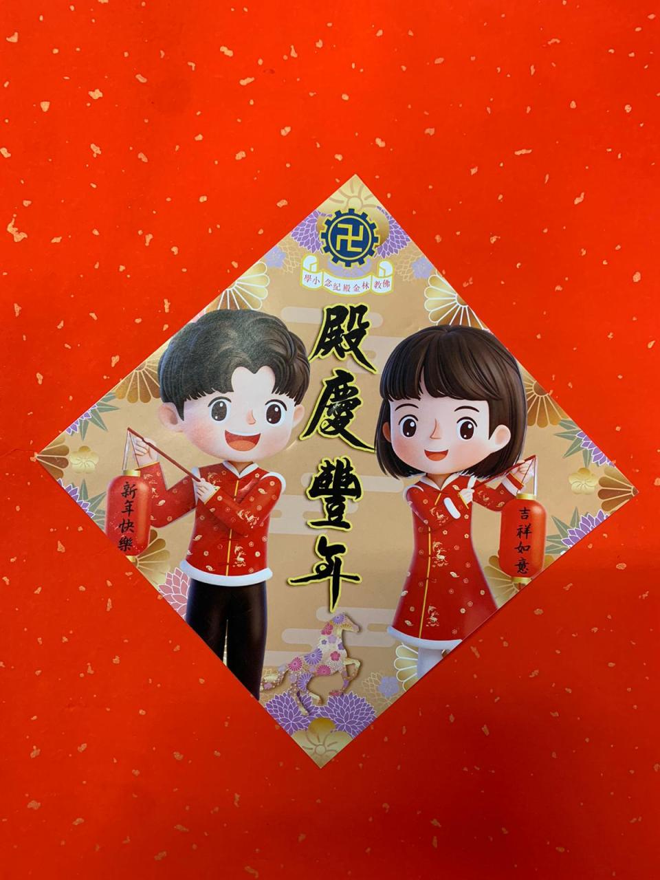 丙午馬年將至,吳校長特別題字:「金堂瑞喜·殿慶豐年」,並獲公司慨贈布施,免費製作成揮春,送贈予每位「金仔殿妹」,每人一套兩張揮春。預祝大家馬年一切順遂、身體健康。