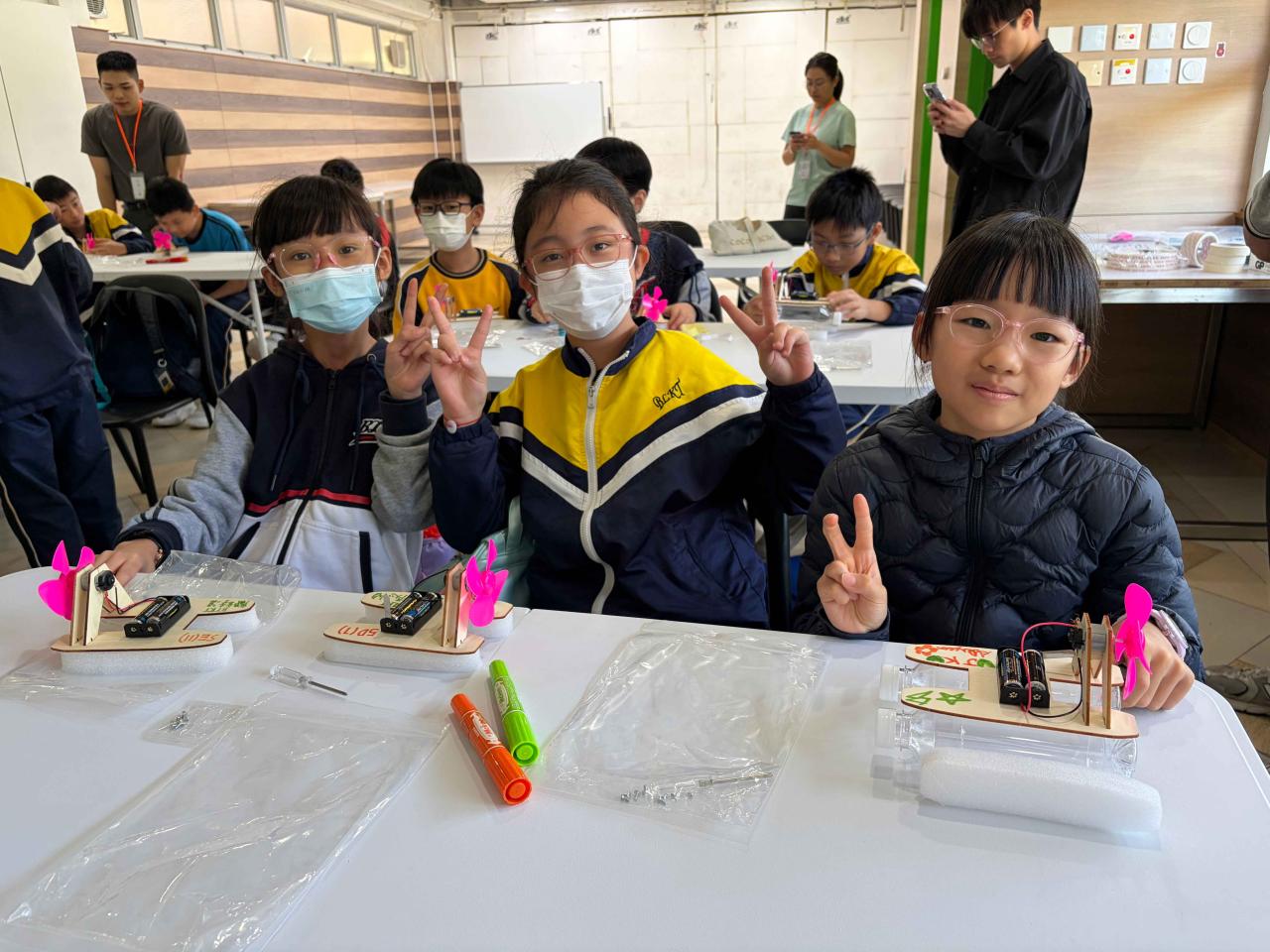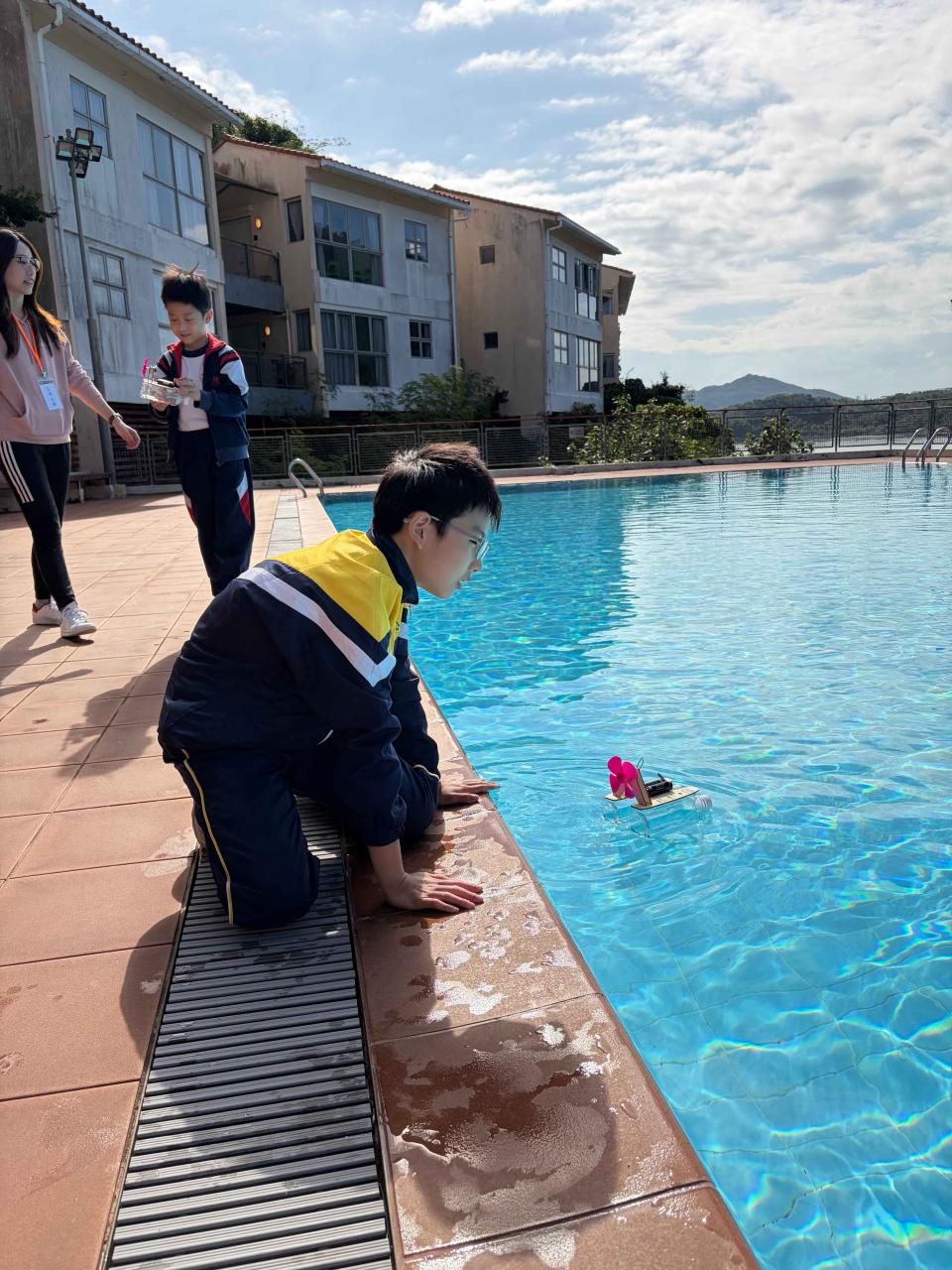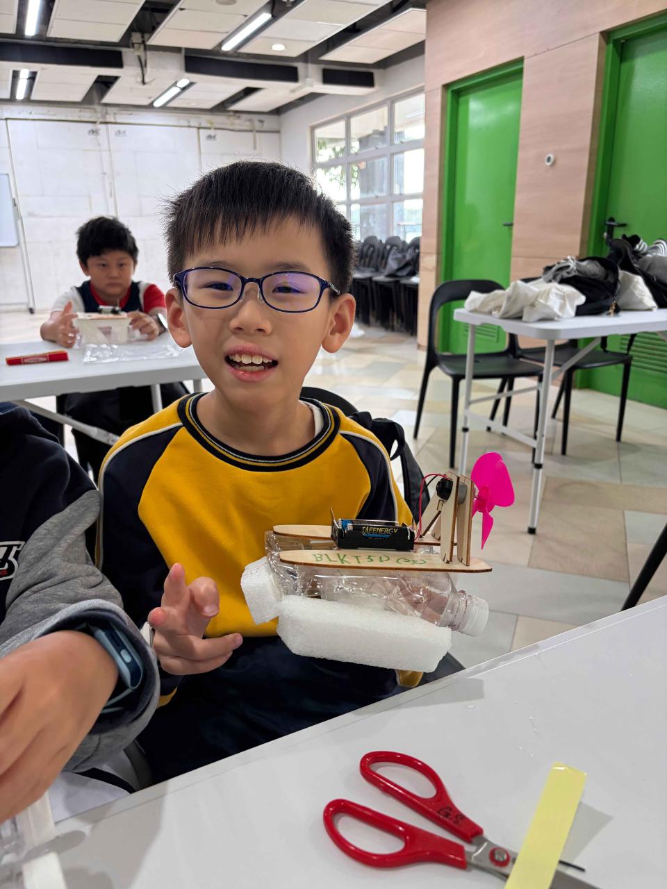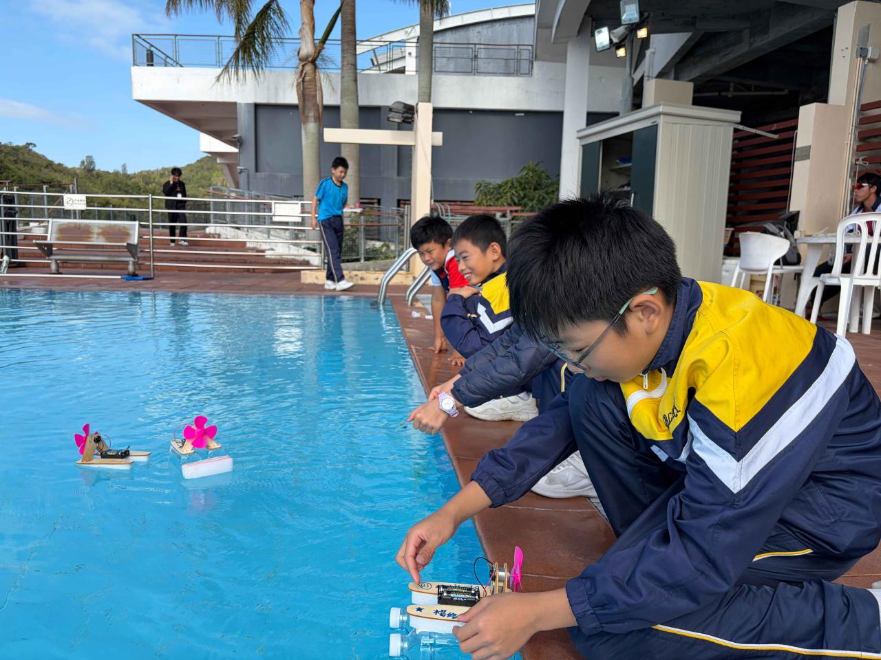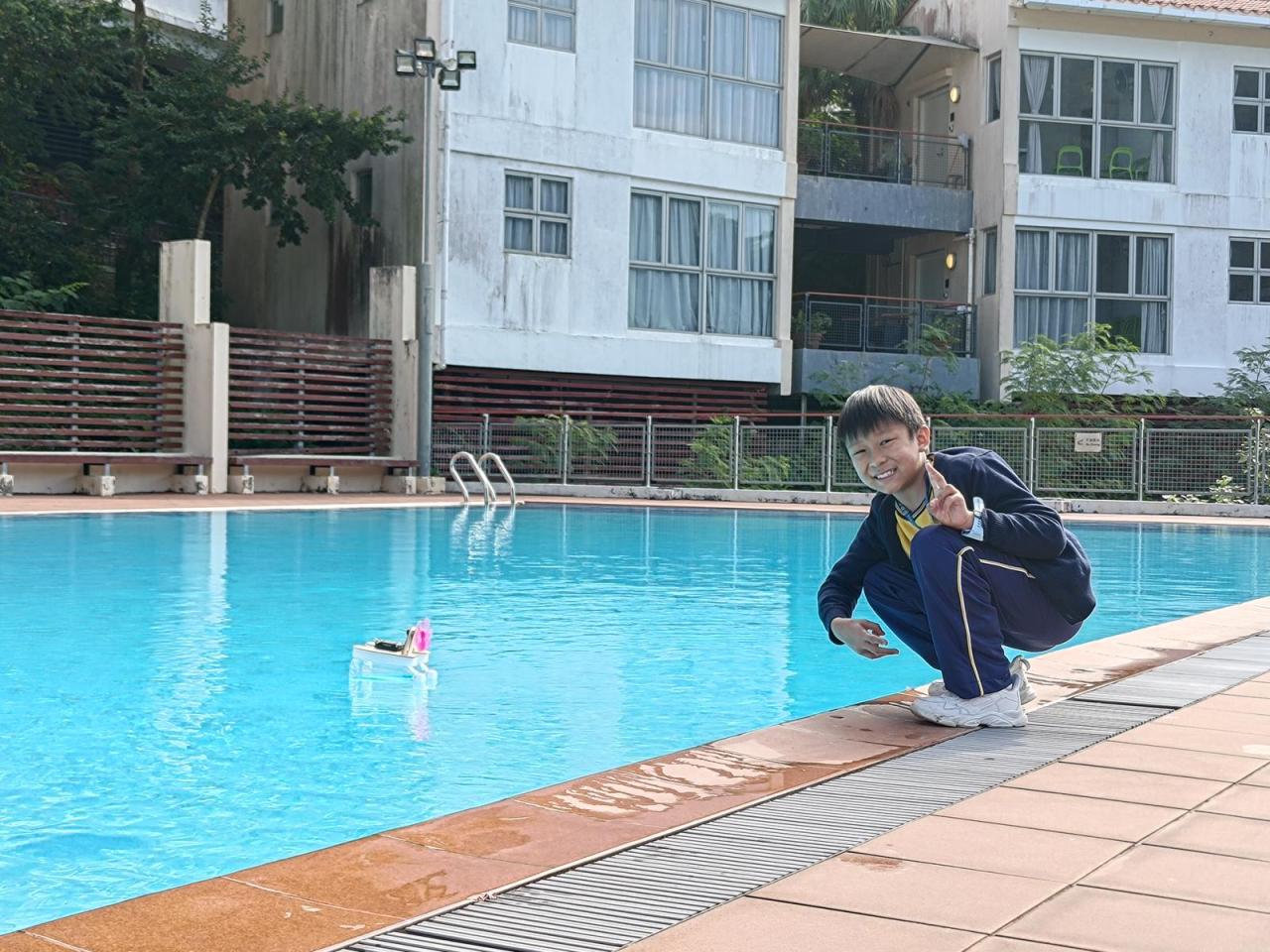 活動2 學生運用日常回收材料,親手設計與打造一艘由摩打驅動的模型小船。完成後,小船在水池中進行速度競賽,測試誰的綠色創意最具效率!