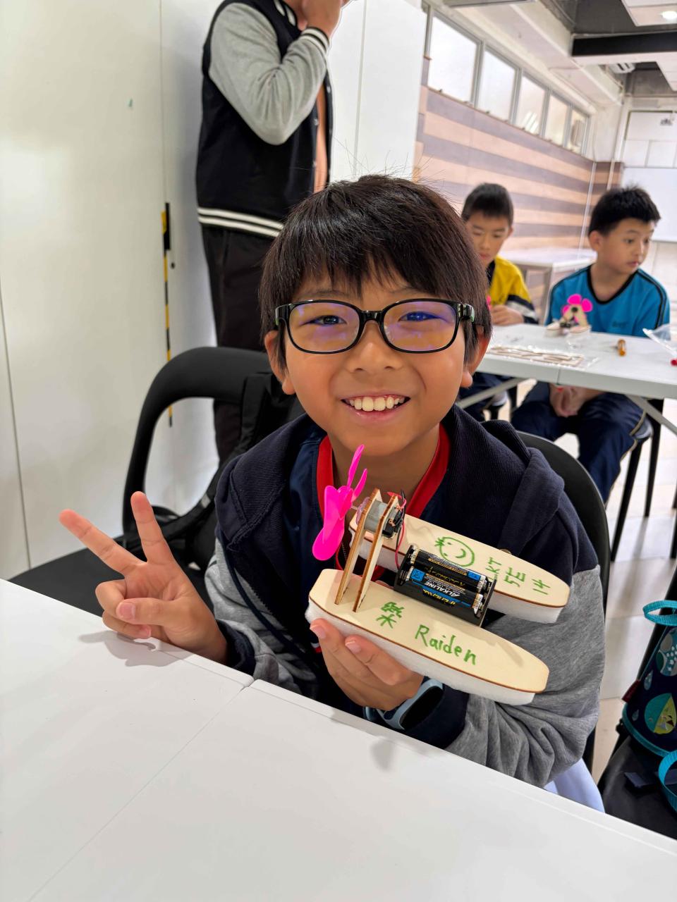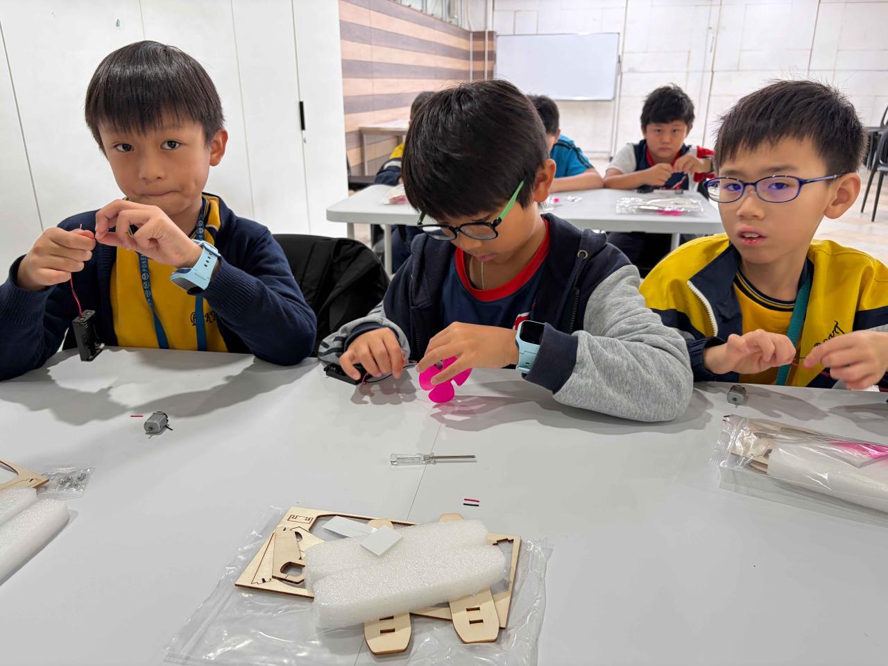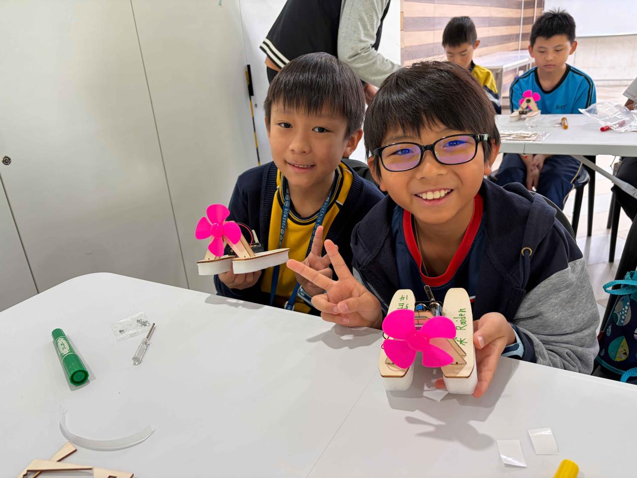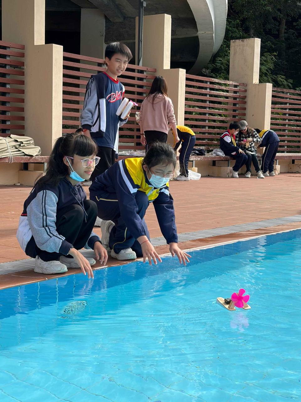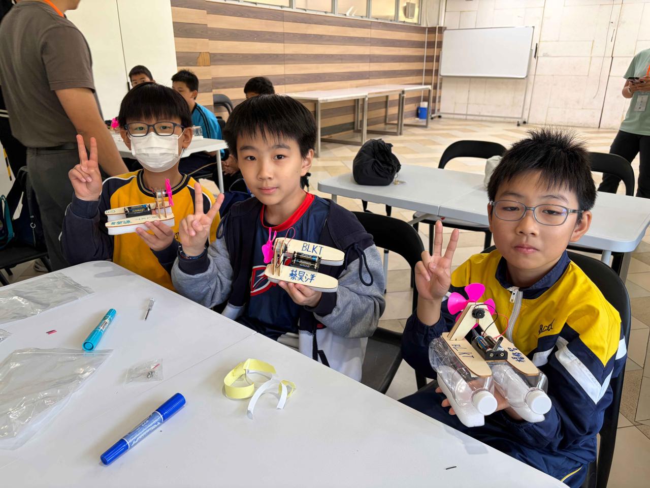 活動2 學生運用日常回收材料,親手設計與打造一艘由摩打驅動的模型小船。完成後,小船在水池中進行速度競賽,測試誰的綠色創意最具效率!