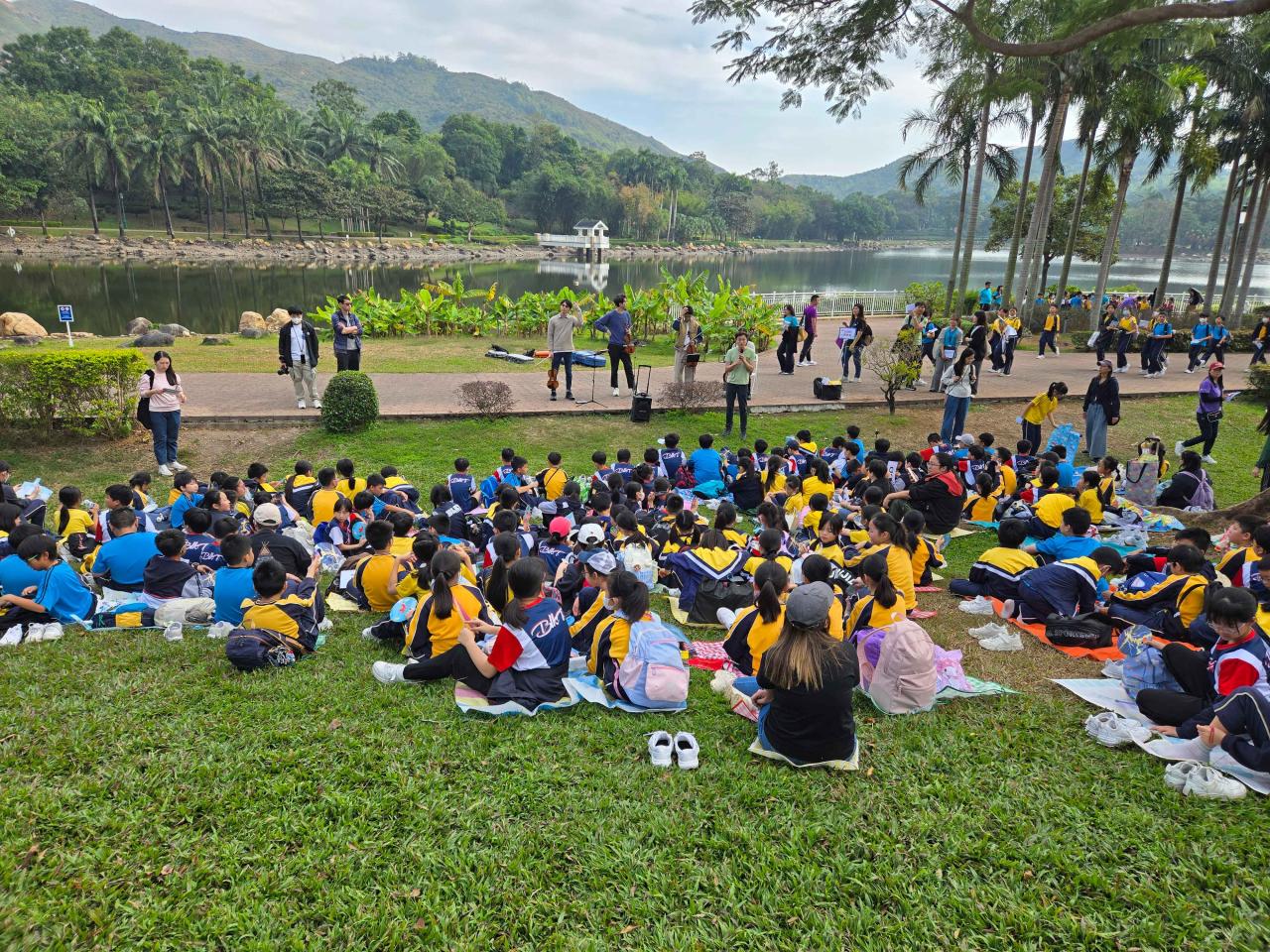 四至六年級同學們前往迪欣湖參加「樂動人生音樂體驗活動」。在這次活動中,同學們充分展現了他們的創造力和合作精神,積極參與各種音樂相關的活動,享受自然環境所帶來的靈感。他們用心感受自然界的音效,展現出對音樂多樣性的好奇與理解。大家在互動中學會了專注與欣賞,亦體會到分享與團隊合作的重要性。最終,透過與自然的結合,體驗到獨具特色的音樂,同學們在活動中充分感受到音樂與自然的和諧之美,培養了對音樂的興趣與愛好。
