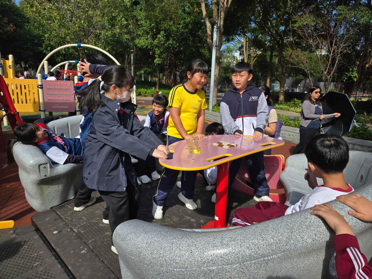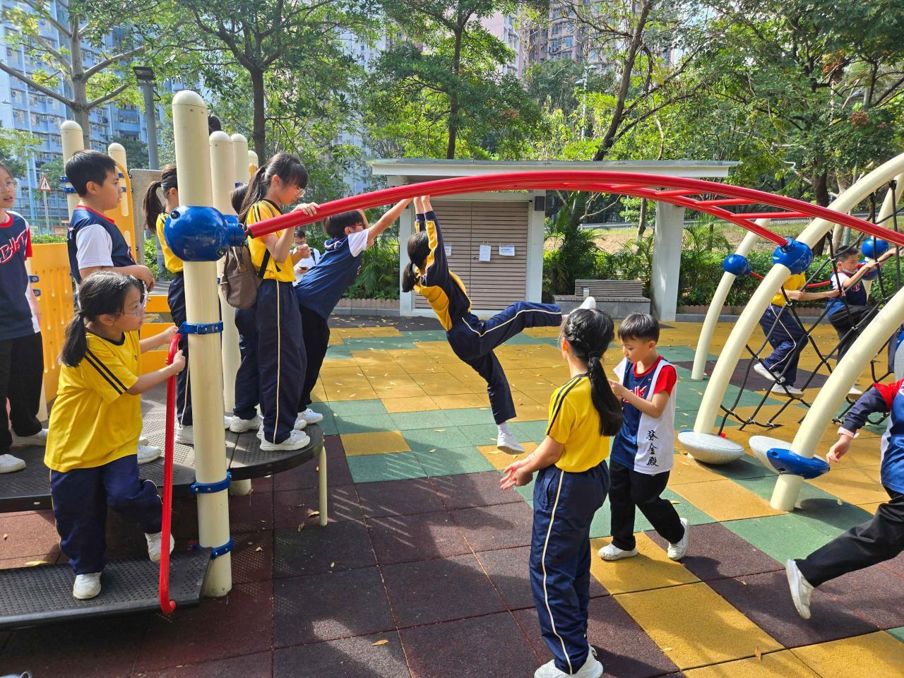 四年級同學們前往位於將軍澳的香港單車館公園,這裡結合了運動與休閒,佔地約5.3公頃。同學們在廣闊的草坪上盡情玩耍並騎著自行車,享受著四周美景。公園內還有兒童遊樂場、露天劇場和運動攀登牆,孩子們玩得不亦樂乎,感受到團隊合作的快樂及戶外活動的趣味,身心得到了很好的放鬆、健康成長。