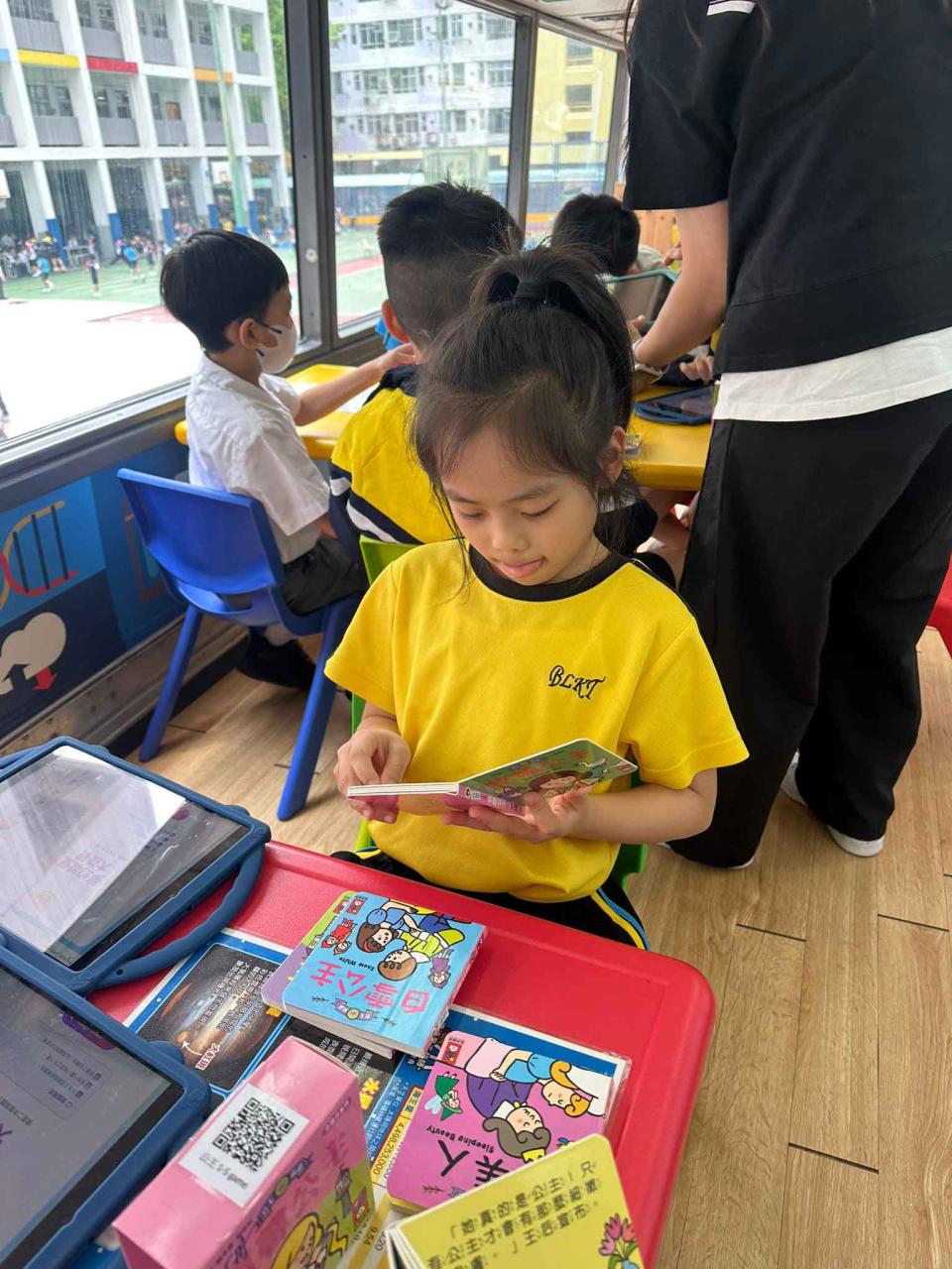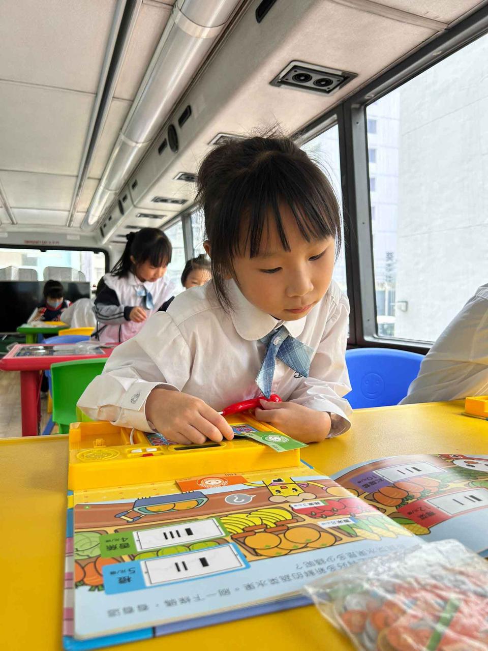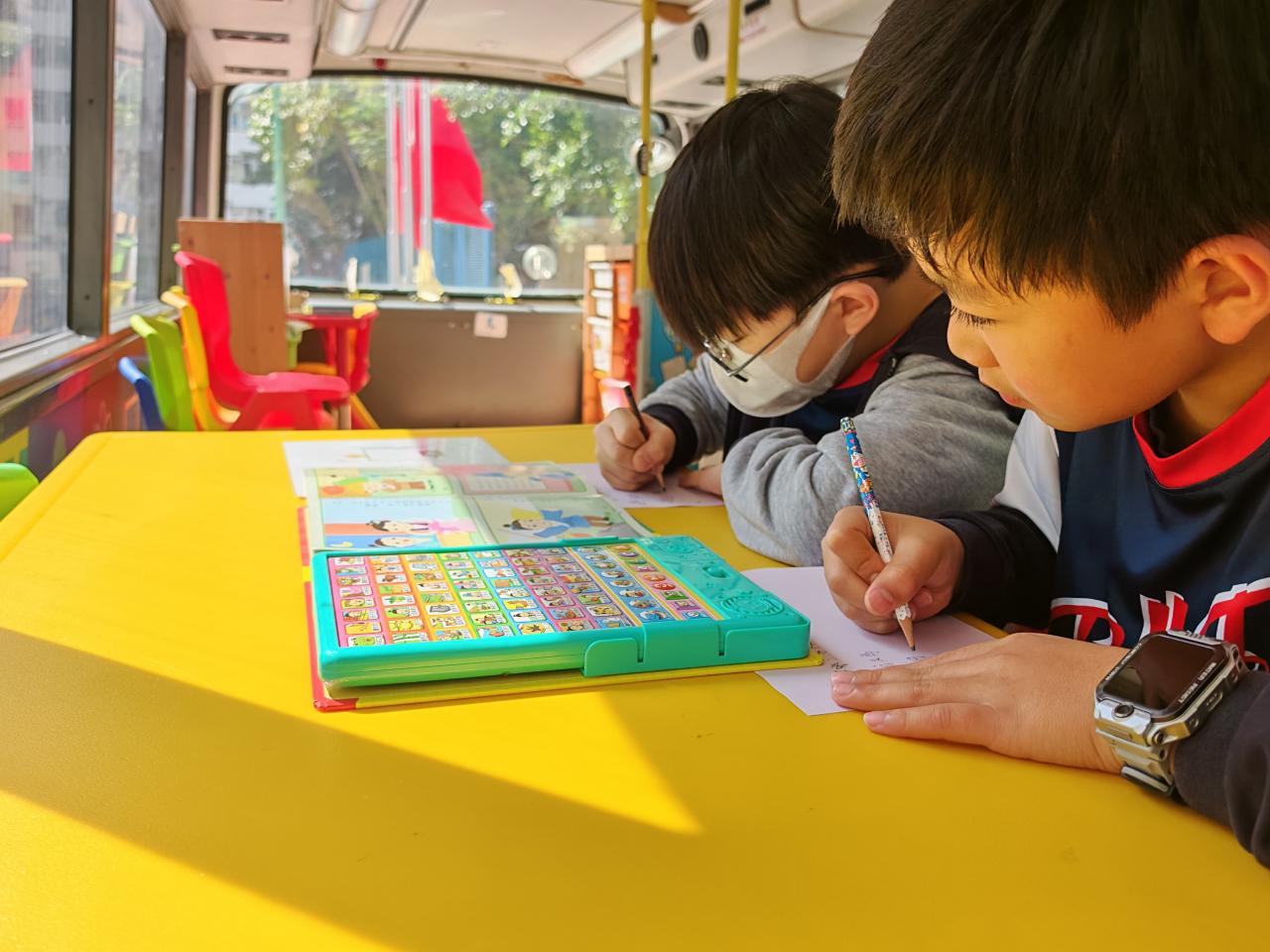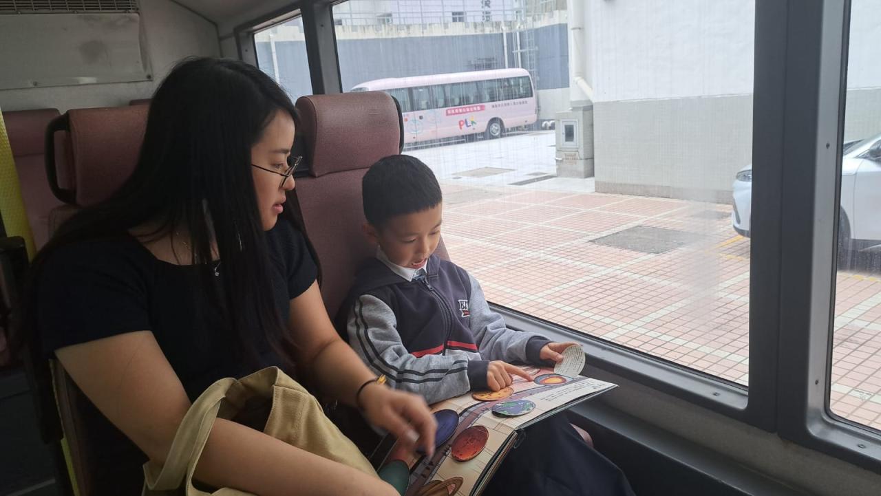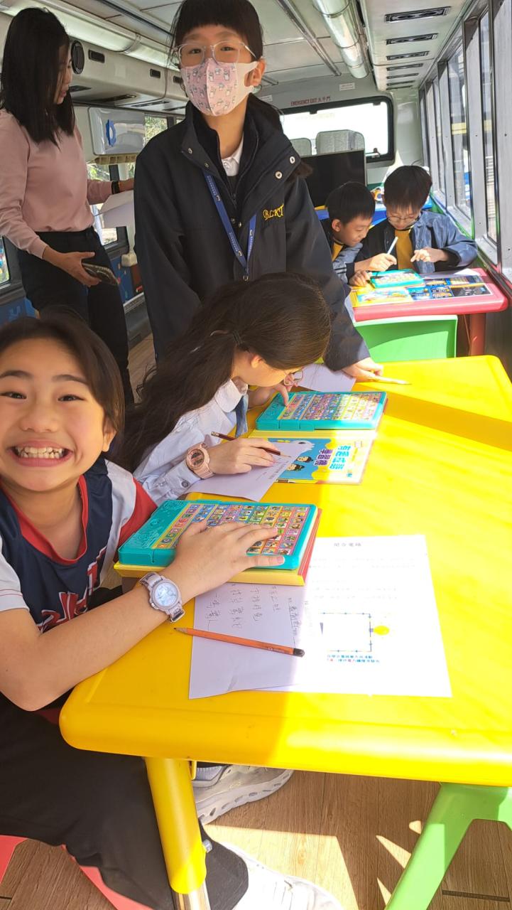 同學們十分期待到巴士活動,在故事媽媽的協助下,在巴士下層閱覽室閱讀立體書、有聲圖書等,故事媽媽還會跟小朋友講故事和玩遊戲,小朋友還可以一嘗當車長的滋味呢。