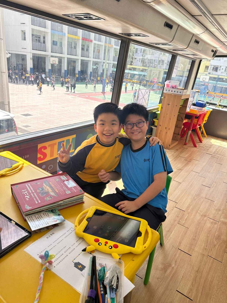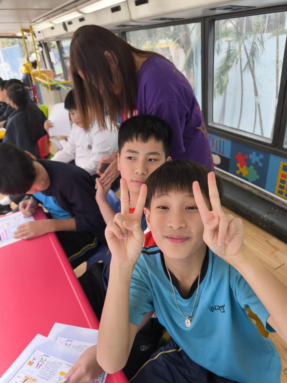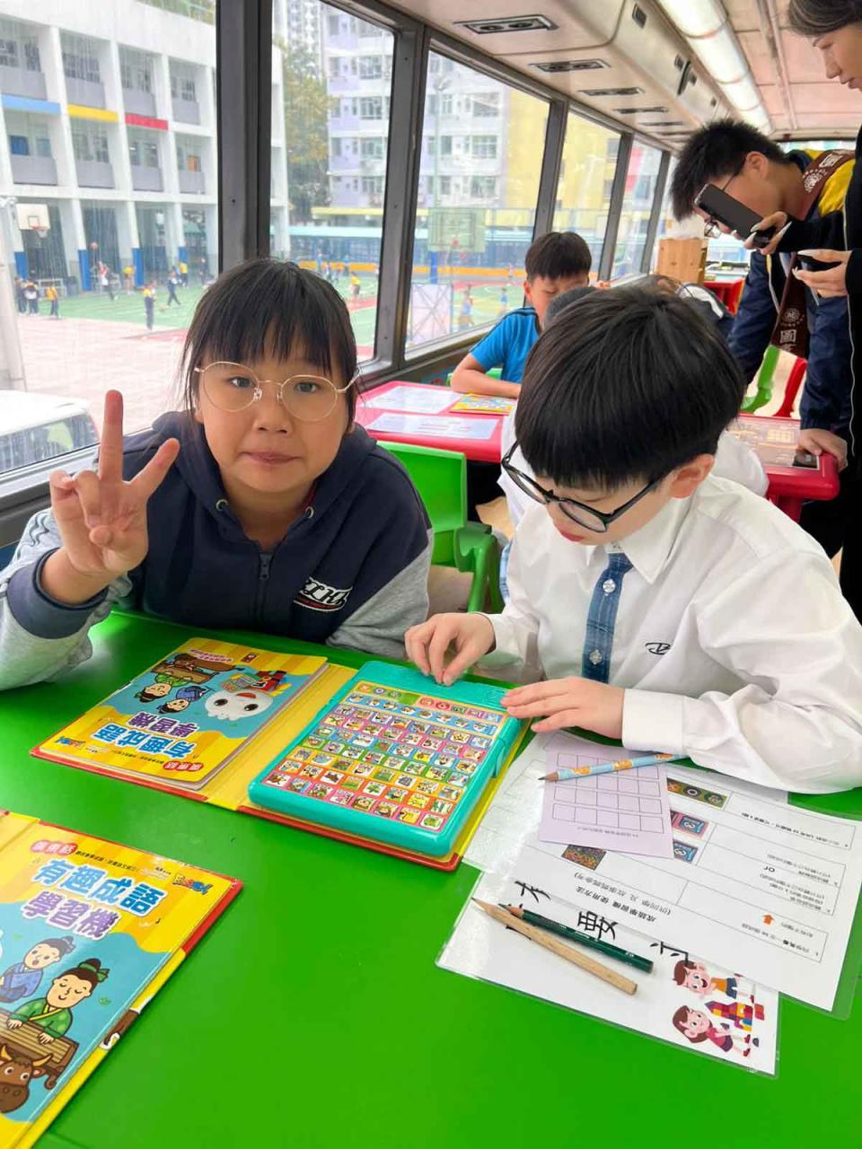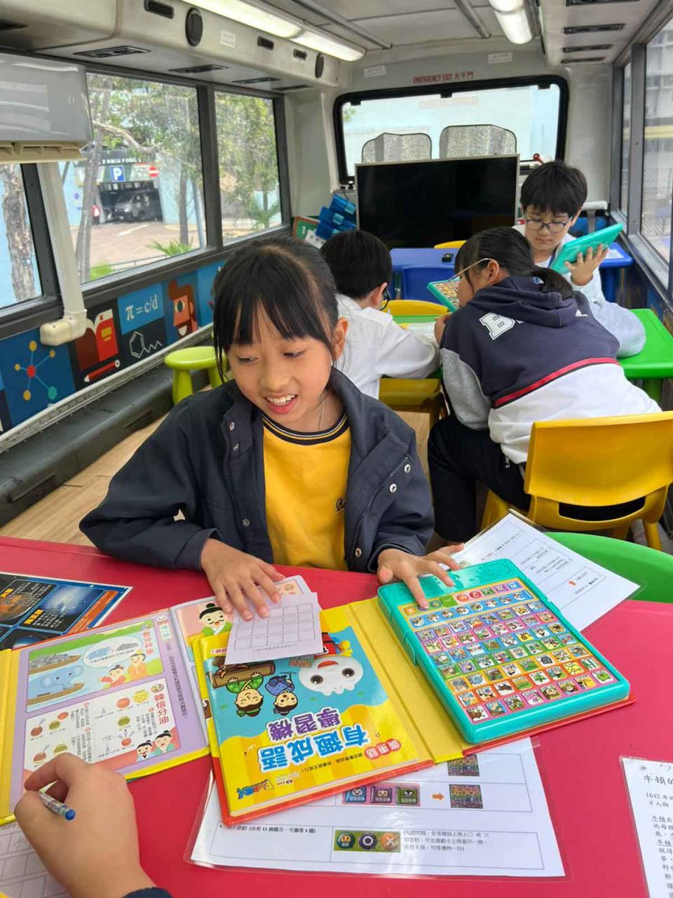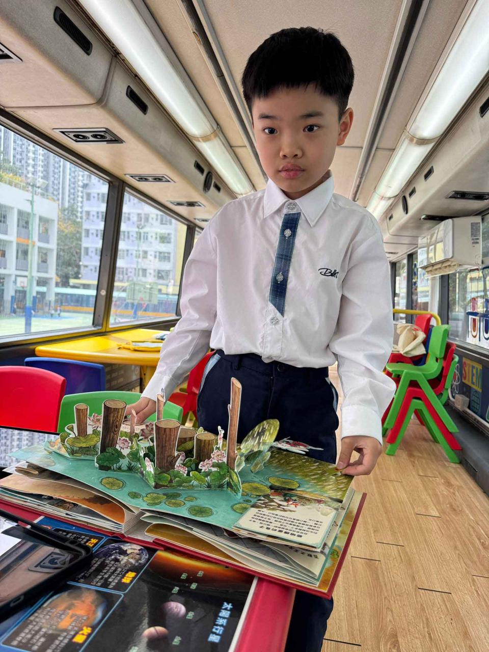 同學們十分期待到巴士活動,在故事媽媽的協助下,在巴士下層閱覽室閱讀立體書、有聲圖書等,故事媽媽還會跟小朋友講故事和玩遊戲,小朋友還可以一嘗當車長的滋味呢。
