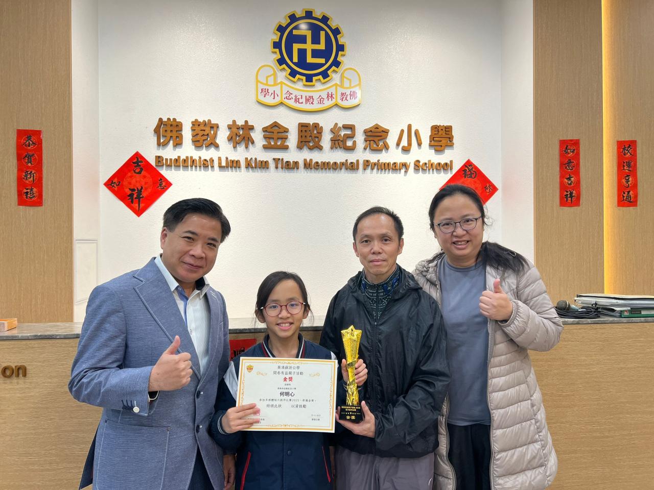 好消息傳來! 本校 5E 班 何明心 同學及其家人,在 葵涌蘇浙公學 主辦的「開卷有益」親子活動——多媒體短片創作比賽中,憑藉出色的創意與細膩的情感,成功奪得 金獎!