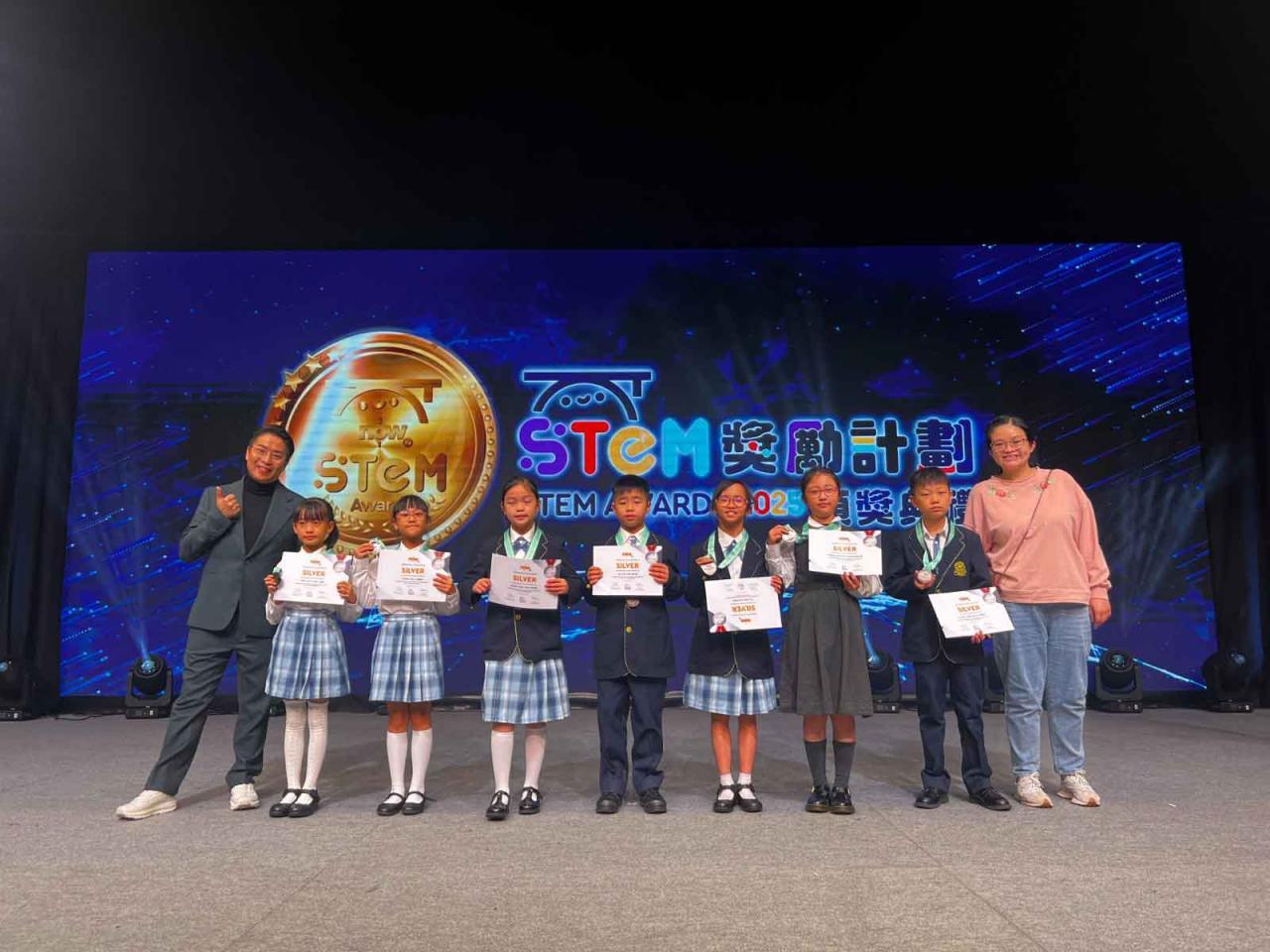本校同學參加了Now TV主辦的「STEM獎勵計劃」,於12月19日在東華三院東蒲──胡李名靜體育館舉行的頒獎典禮,共獲1個csl. 5G 極速任務大獎及7個「銀章」!