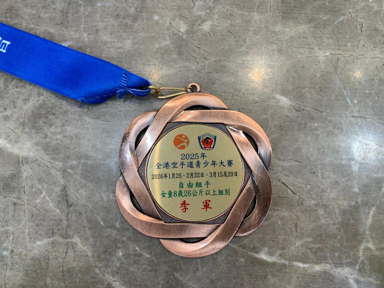 本校 3C 班 林梓晴 同學早前參加了由中國香港空手道總會主辦的 《2025年全港空手道青少年大賽》。經過多輪激烈的較量,梓晴憑著出色的技術與堅毅不屈的精神,在「女童8歲 26公斤以上」組別中脫穎而出,勇奪 季軍 殊榮!