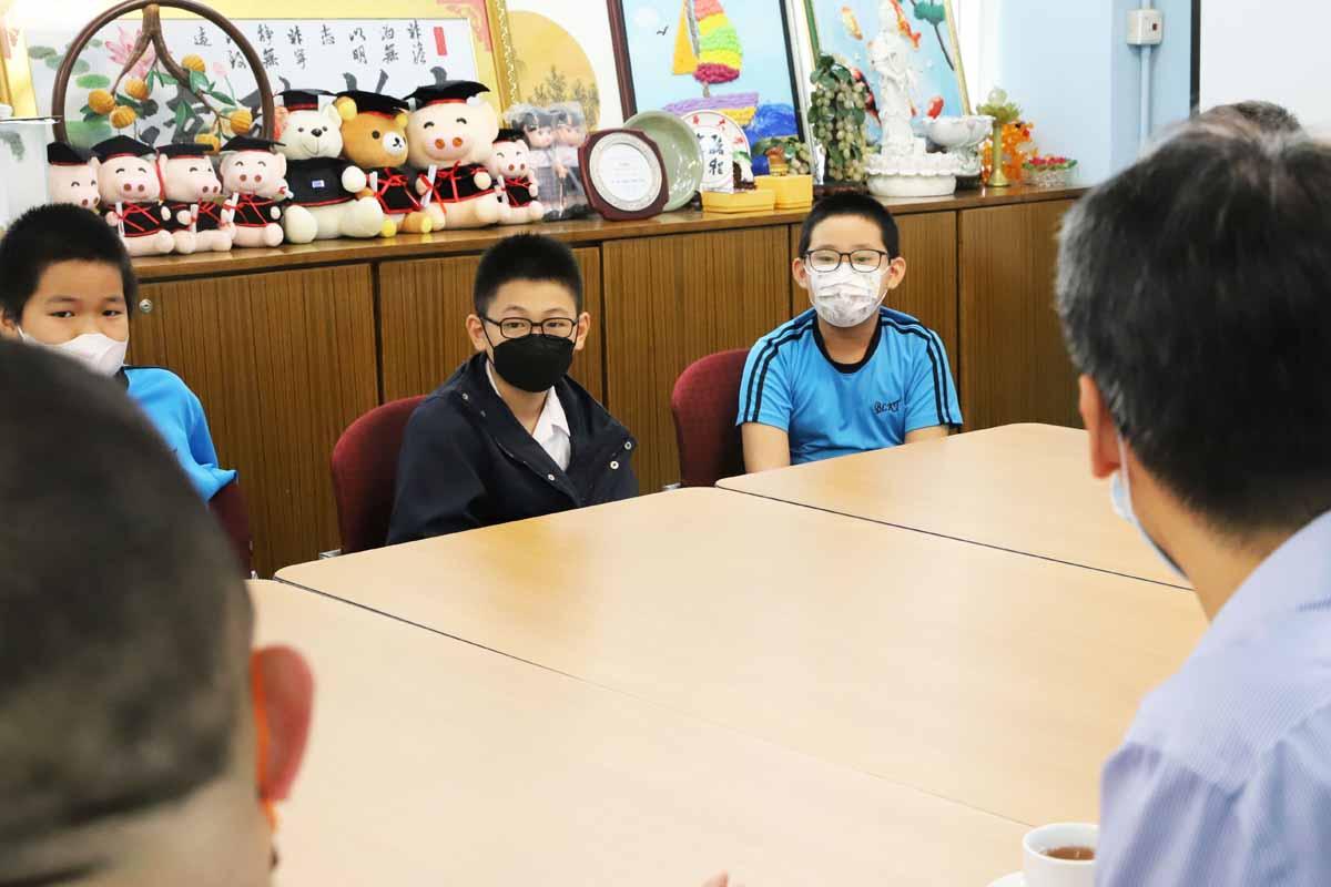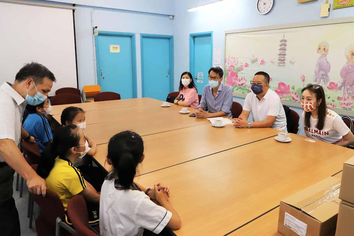 今天該機構團隊親臨本校作親善探訪,並和同學代表作溫馨交流,大家聚首一堂,交流生活及學習點滴,噓寒問暖之餘,亦藉此加深對學童的了解及關注。最後嘉賓和同學在吳校長的引領下,一同在佛像壁畫前及「淨林」(本校禪修室)合照。在晴朗的天空下,今次親善探訪活動圓滿,同學們懷着感恩的心致謝嘉賓,我們再次衷心感謝「有艇搭」慈善機構慷慨布施,功德無量,感恩!