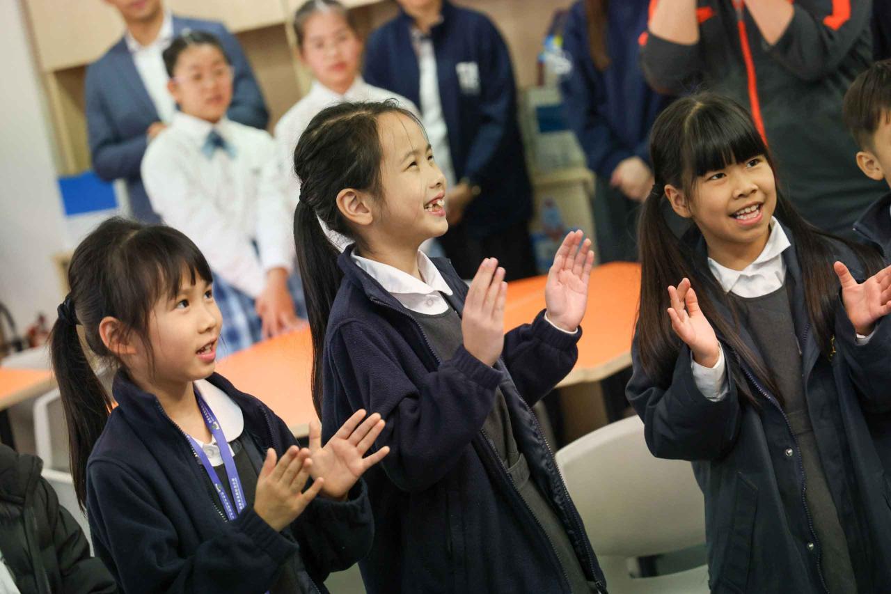 嘉賓在小司儀與計劃夥伴香港浸會大學和港協暨奧委會「奧夢成真」的團隊引領下,走進校園多個角落視察學生的學習成果: