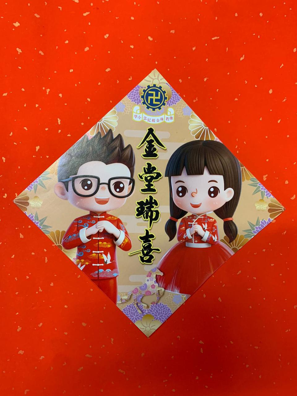 丙午馬年將至,吳校長特別題字:「金堂瑞喜·殿慶豐年」,並獲公司慨贈布施,免費製作成揮春,送贈予每位「金仔殿妹」,每人一套兩張揮春。預祝大家馬年一切順遂、身體健康。