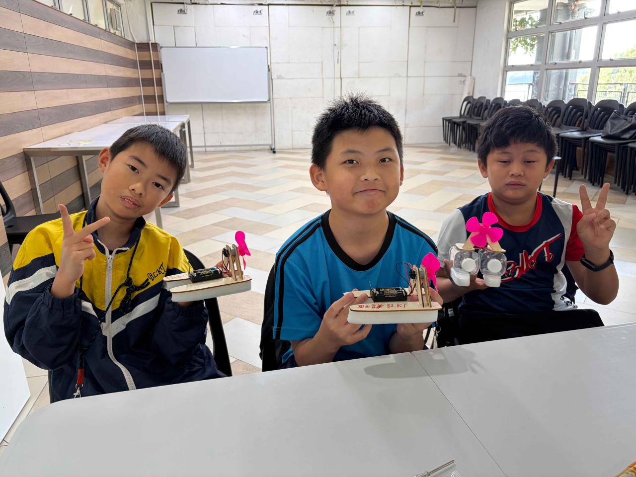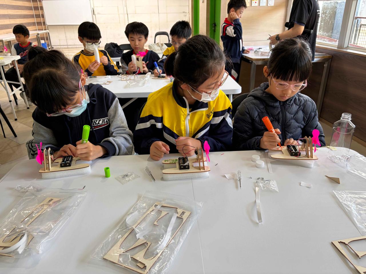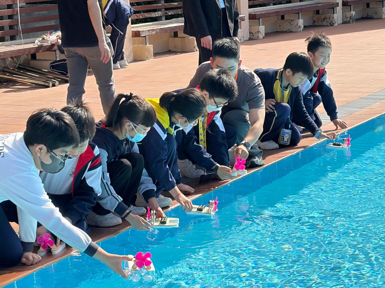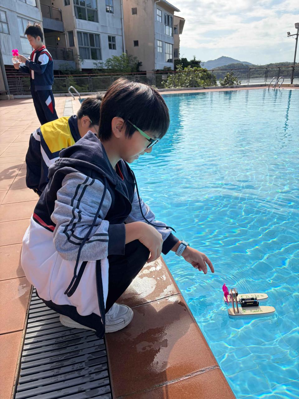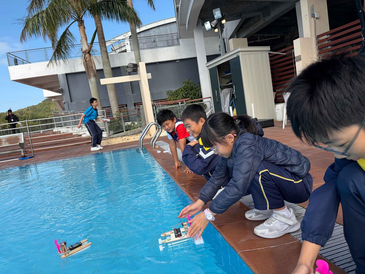 活動2 學生運用日常回收材料,親手設計與打造一艘由摩打驅動的模型小船。完成後,小船在水池中進行速度競賽,測試誰的綠色創意最具效率!