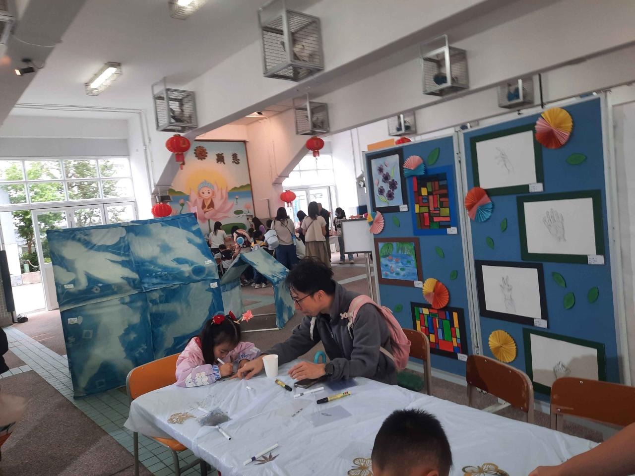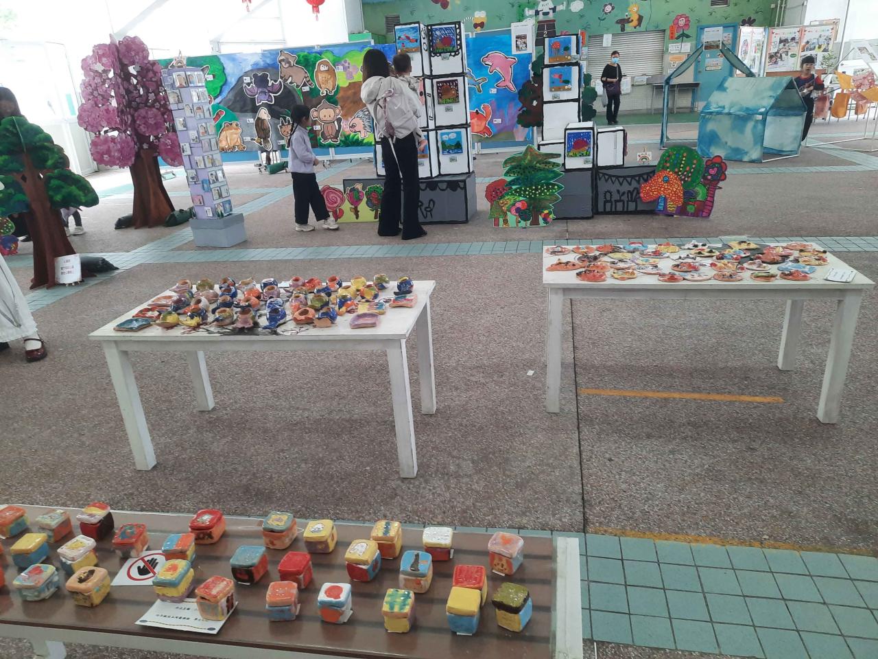展覽內容豐富多姿,當中最受矚目的是兩校小朋友合力創作的大型合作畫,展現了無限創意與團隊精神!此外,現場多個藝術工作坊及攤位遊戲亦吸引了大批家長帶同小朋友參與,歡笑聲此起彼落,氣氛非常熱鬧!