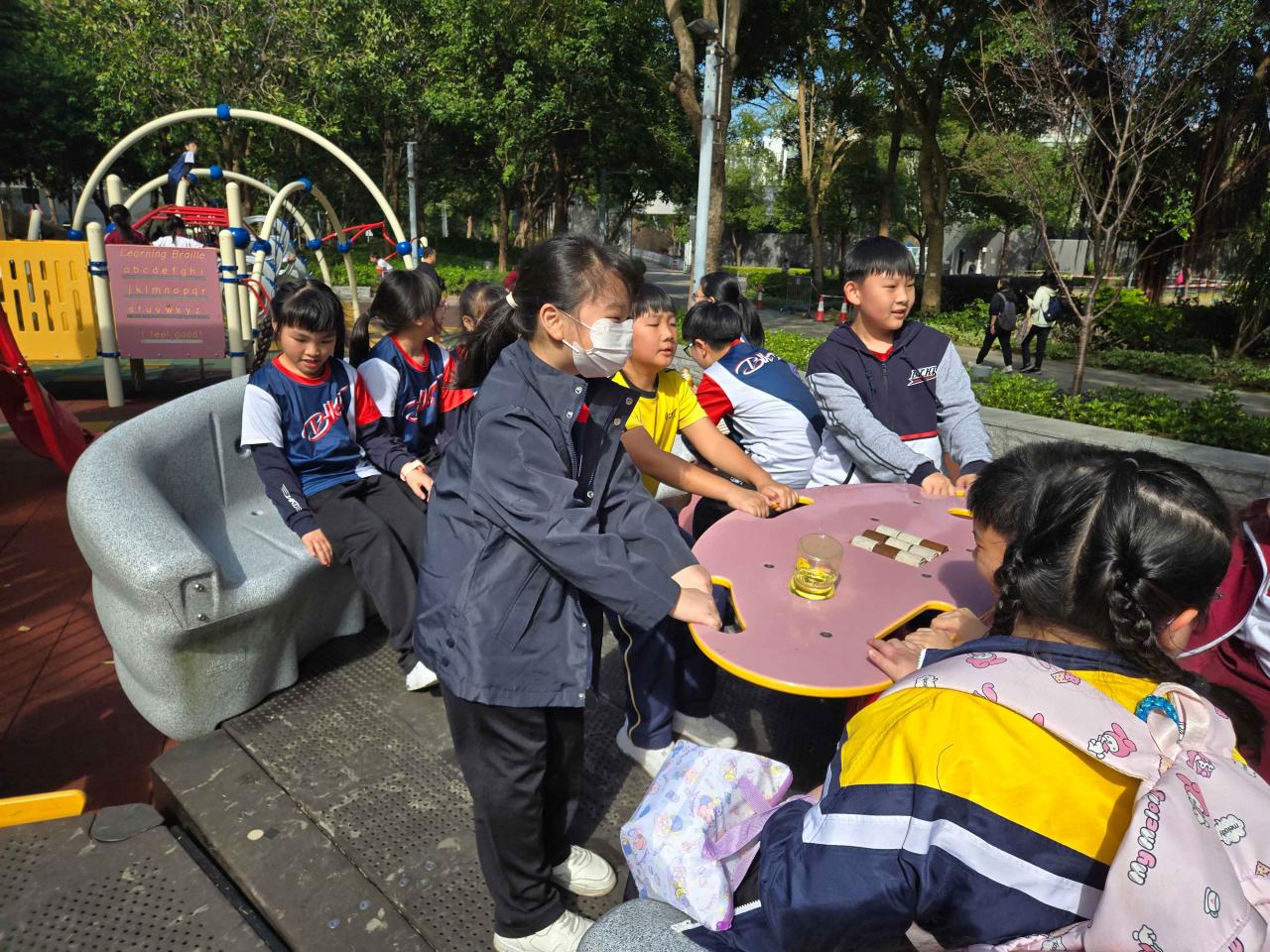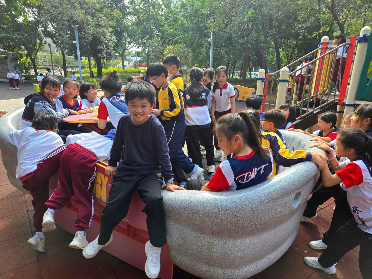四年級同學們前往位於將軍澳的香港單車館公園,這裡結合了運動與休閒,佔地約5.3公頃。同學們在廣闊的草坪上盡情玩耍並騎著自行車,享受著四周美景。公園內還有兒童遊樂場、露天劇場和運動攀登牆,孩子們玩得不亦樂乎,感受到團隊合作的快樂及戶外活動的趣味,身心得到了很好的放鬆、健康成長。