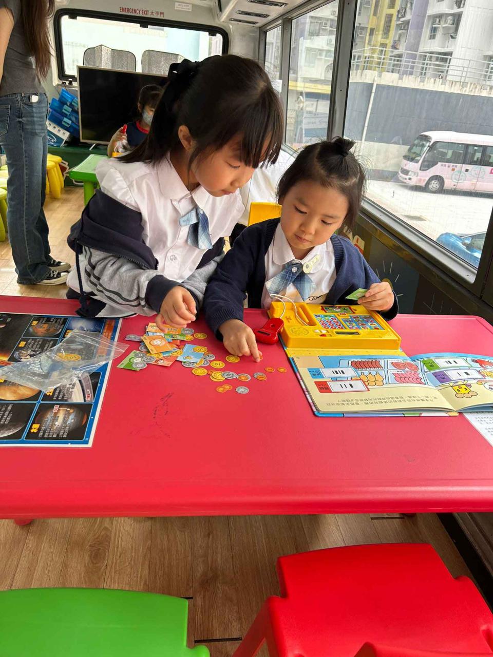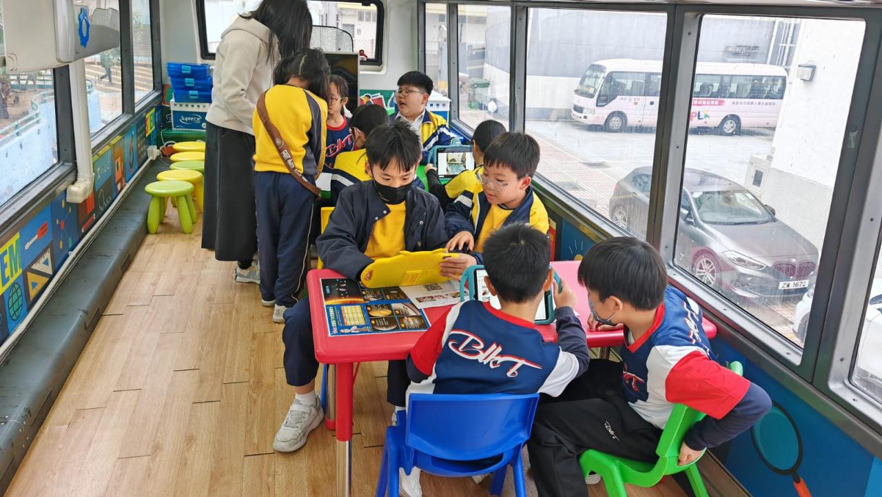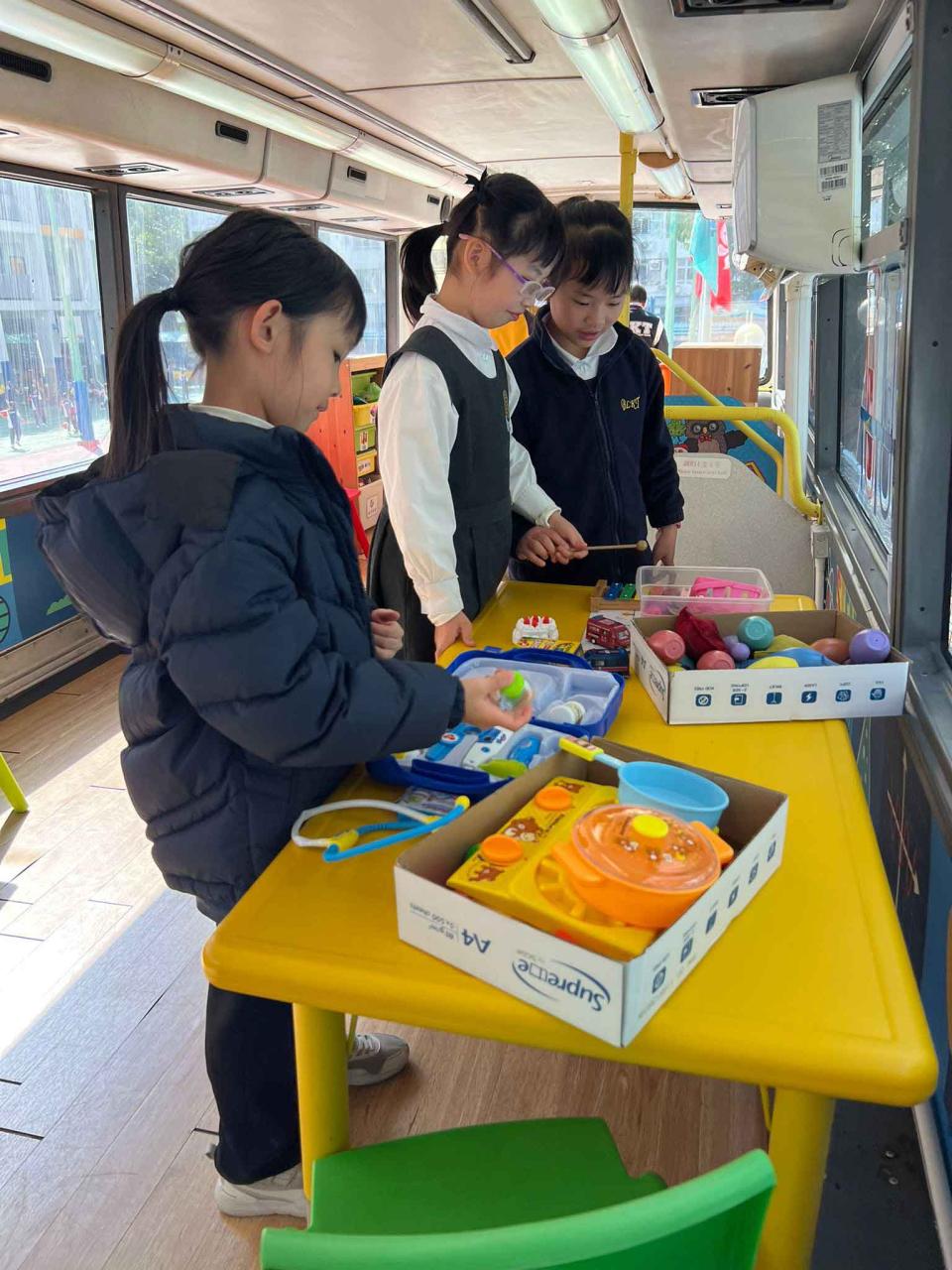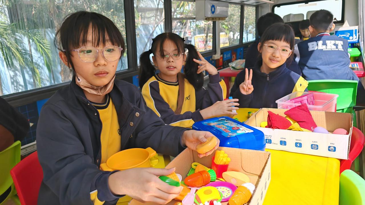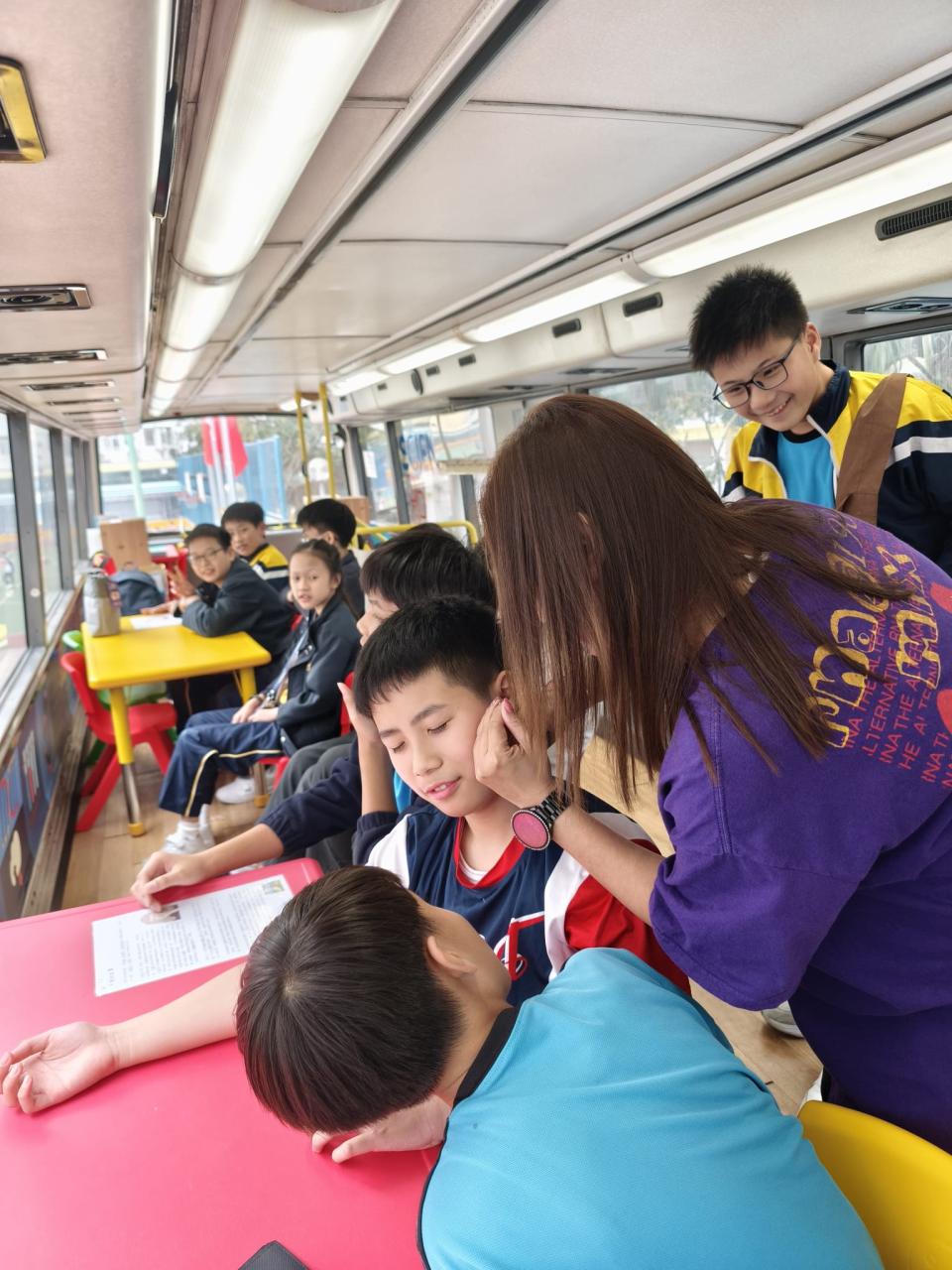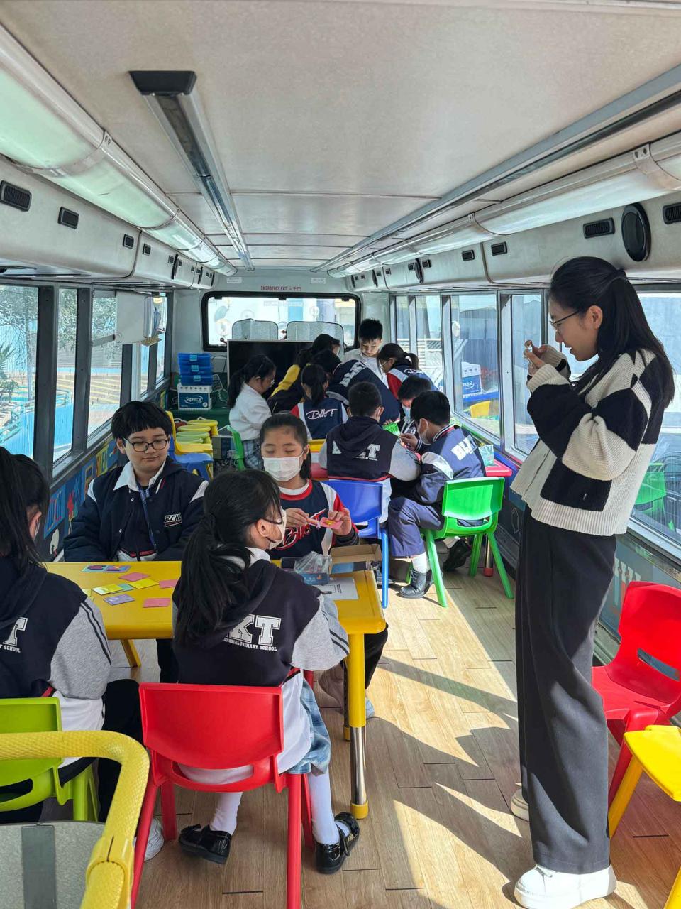 同學們十分期待到巴士活動,在故事媽媽的協助下,在巴士下層閱覽室閱讀立體書、有聲圖書等,故事媽媽還會跟小朋友講故事和玩遊戲,小朋友還可以一嘗當車長的滋味呢。