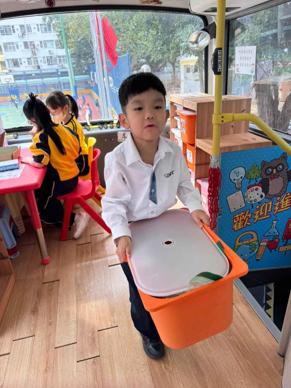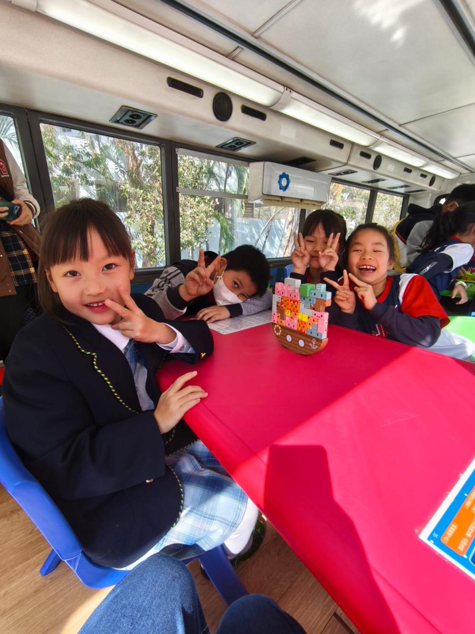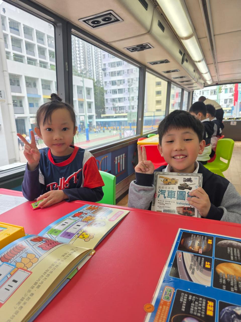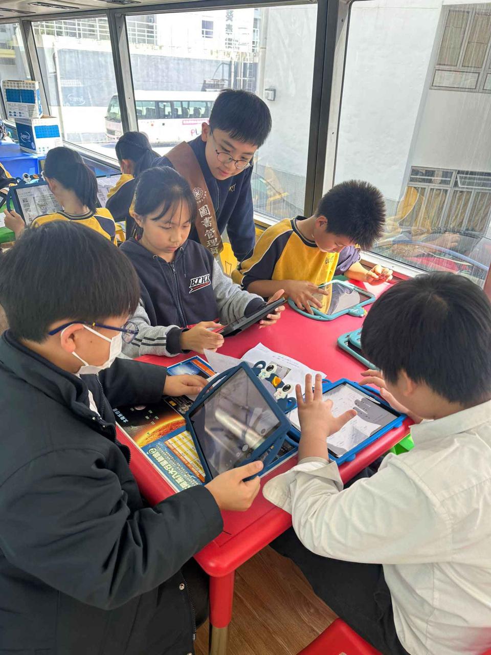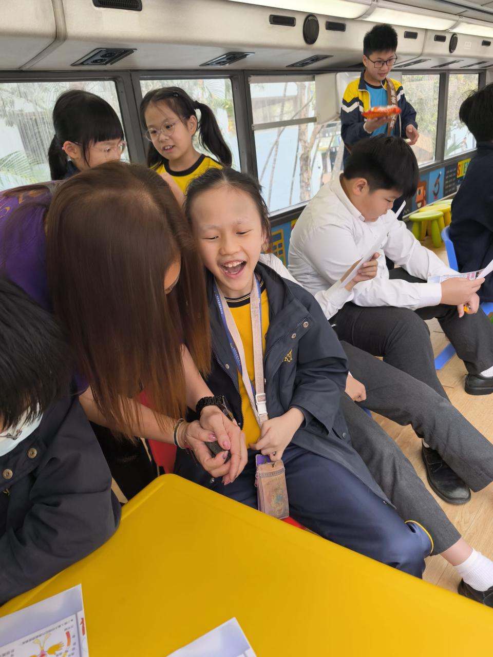 同學們十分期待到巴士活動,在故事媽媽的協助下,在巴士下層閱覽室閱讀立體書、有聲圖書等,故事媽媽還會跟小朋友講故事和玩遊戲,小朋友還可以一嘗當車長的滋味呢。