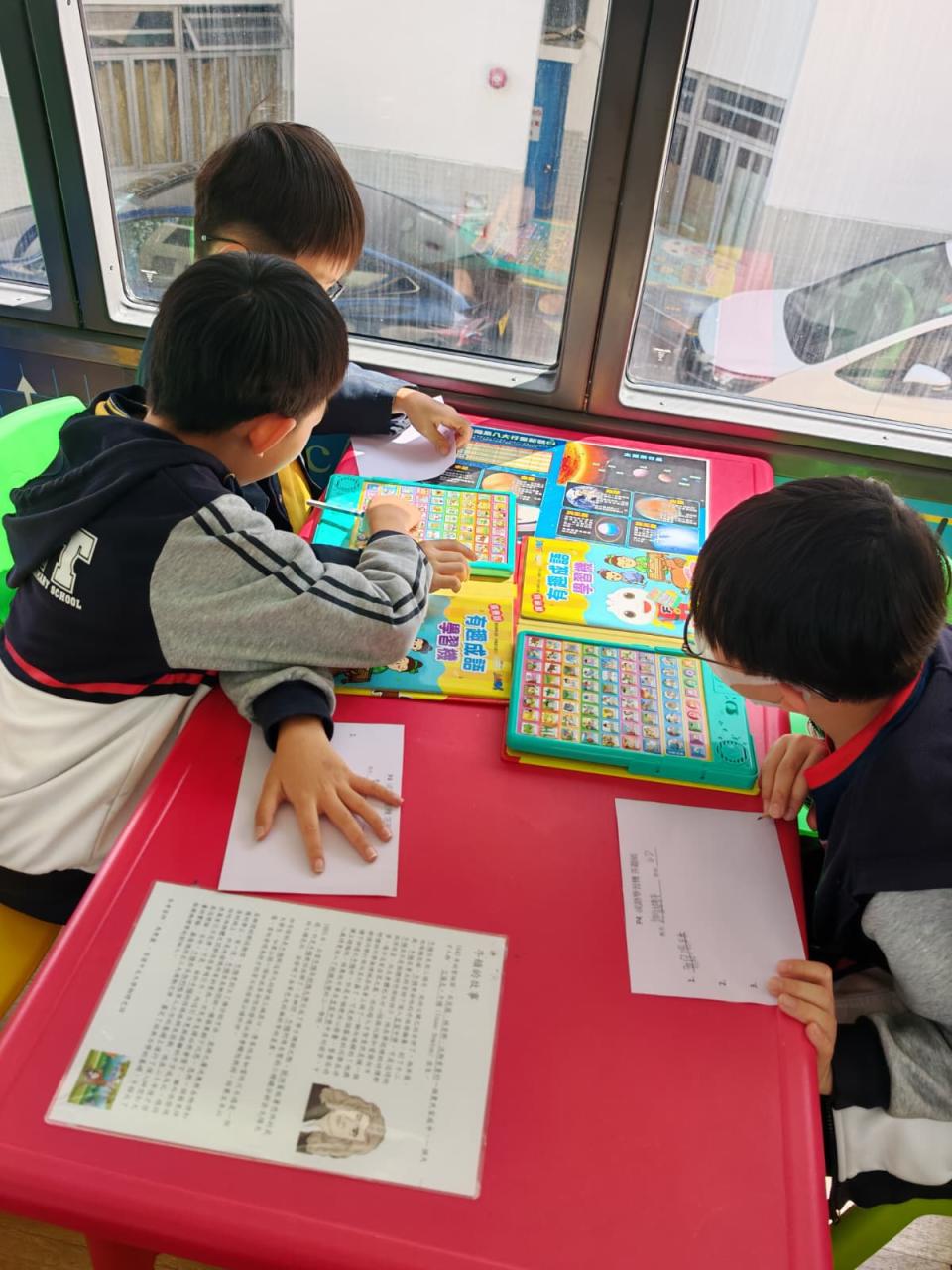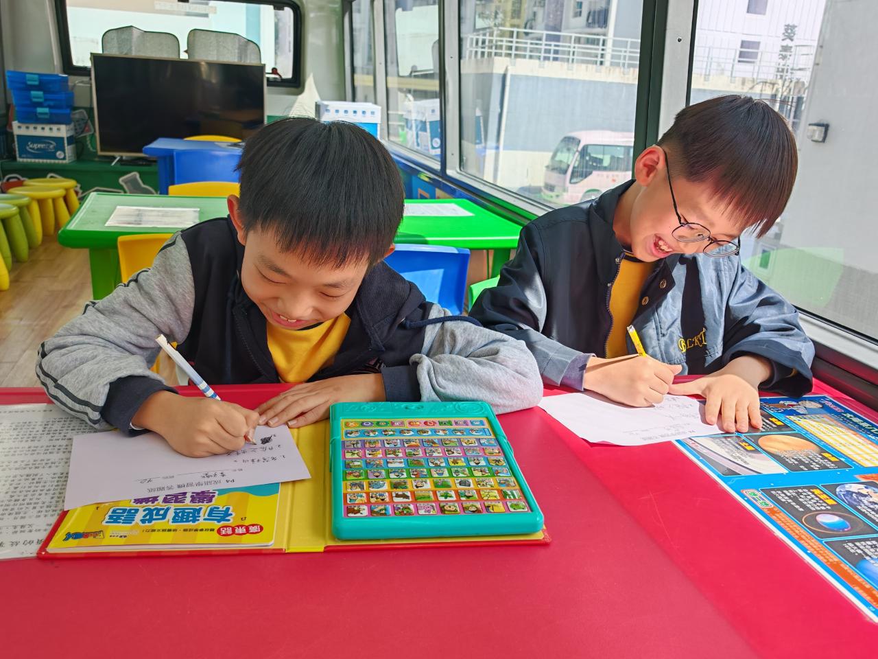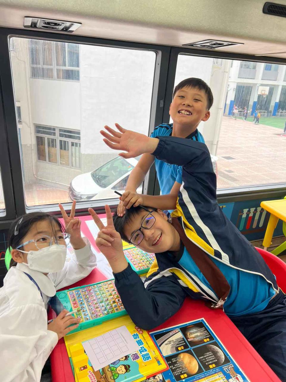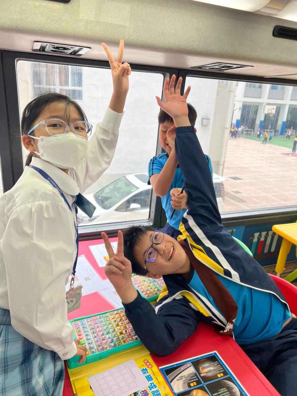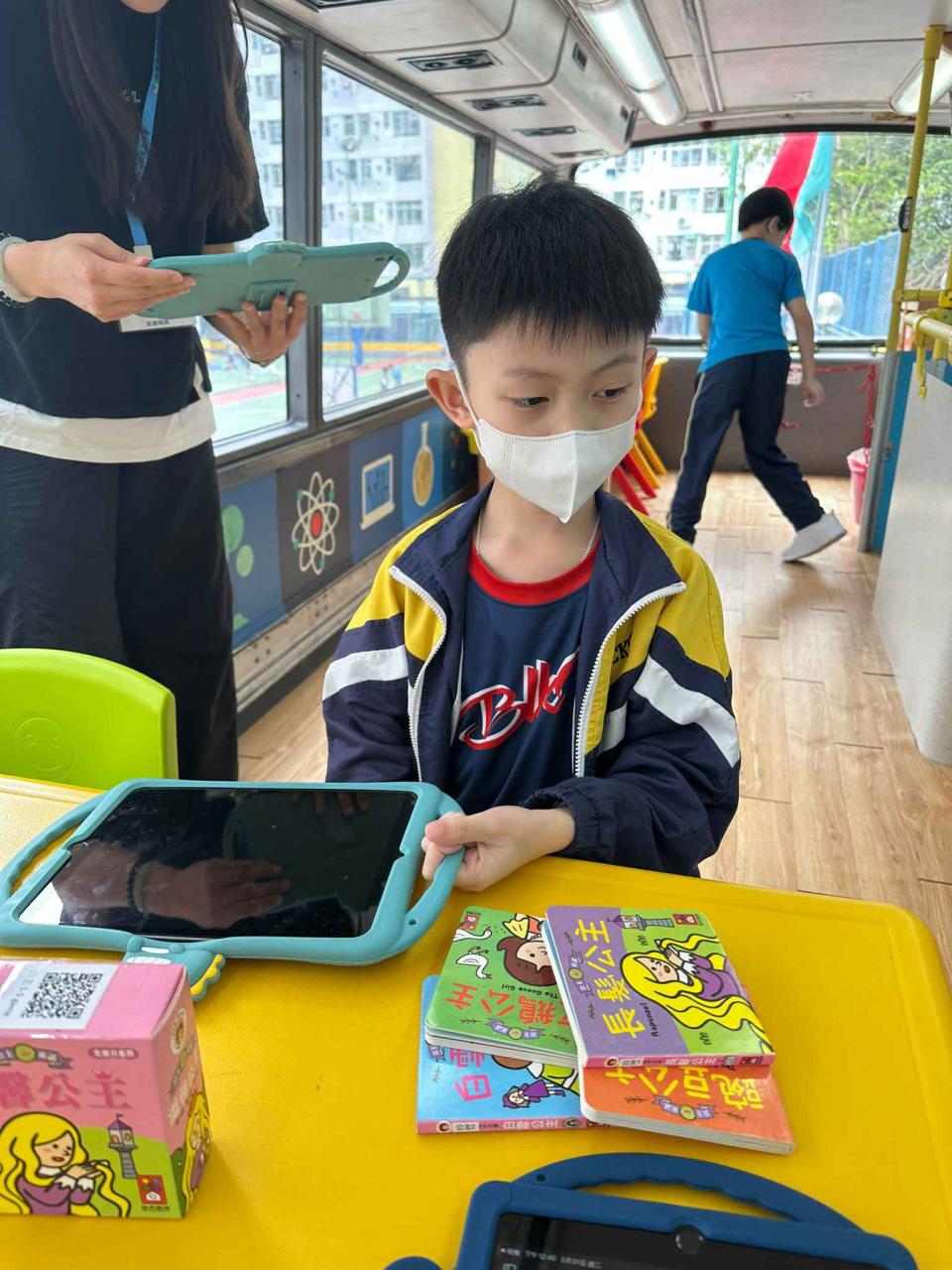 同學們十分期待到巴士活動,在故事媽媽的協助下,在巴士下層閱覽室閱讀立體書、有聲圖書等,故事媽媽還會跟小朋友講故事和玩遊戲,小朋友還可以一嘗當車長的滋味呢。