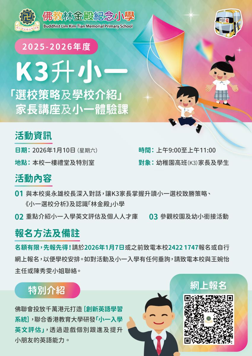 2025-2026年度 K3升小一統一派位「選校策略及學校介紹」家長講座及小一體驗課
